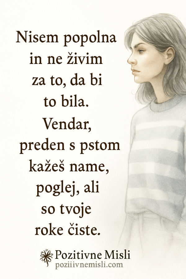 Nisem idealna, briga me! Tudi Luna ni -je polna kraterjev. In morje? Preslano je! Nebo? Tako neskončno je! --- Torej? Vse lepe stvari niso IDEALNE, toda so ENKRATNE! Jaz nisem idealna! Toda ENKRATNA, to pa ja!