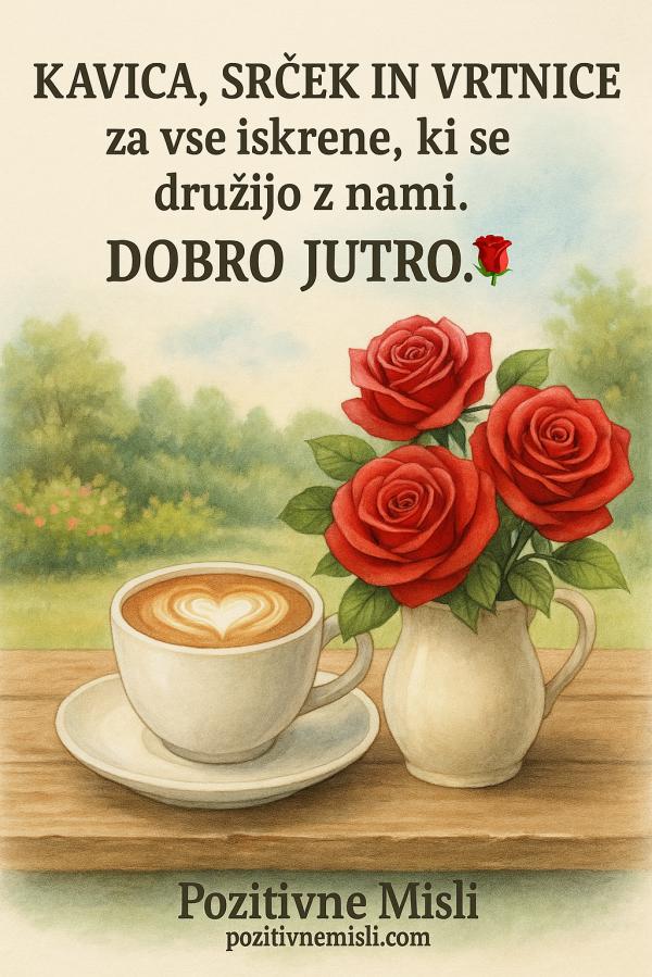 Jutro se prebuja s čudovitim vonjem sveže kave, ki prinaša zrak poln ljubezni in topline. "Kava že diši, prinaša vonj ljubezni in obljubo čudovitega jutra. Naj bo ta dan poln topline, kot je topel prvi požirek kave."
