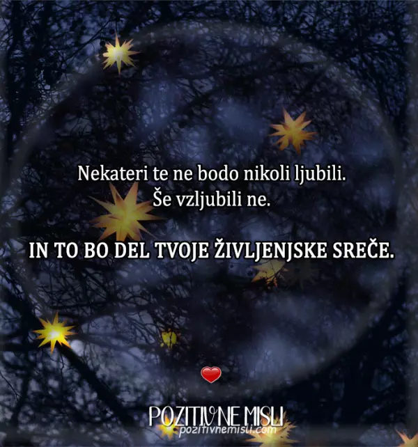 Naj te ne rani in ne žali nič, kar hudega se ti zgodi. Odpusti vedno in pozabi, saj sonca v življenju brez sence ni.