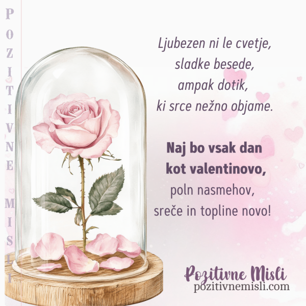 Valentinovo naj ne bo le enkratno praznovanje, ampak opomnik, da so lepe besede ljubezni in skrbnosti dragoceni darovi, ki jih lahko delimo vsak dan. Naj ta dan vzpodbudi val ljubezni, ki se bo razlival skozi vse leto, osvetljujoč naše življenje z nežnostjo, razumevanjem in iskreno povezanostjo.