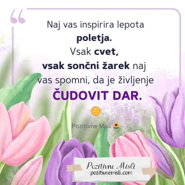 🌷 Naj te ta misel opomni, da je tvoje bistvo čista svetloba. Tudi ti zaslužiš srečo, nežnost in radost.